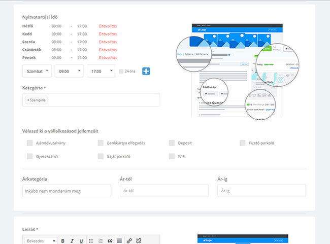 Módosítsd az alap beállításokat az igényeidnek megfelelően. Ha nem töltöd ki akkor a vendégek bizonyos keresési, szűrési szolgáltatásoknál nem látják a vállalkozásodat (most nyitva).