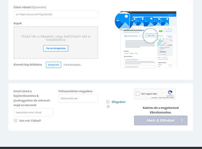 Lehetőséged van üzleti videód megjelenítésére, töltsd fel youtube-ra majd a linket illeszd be.